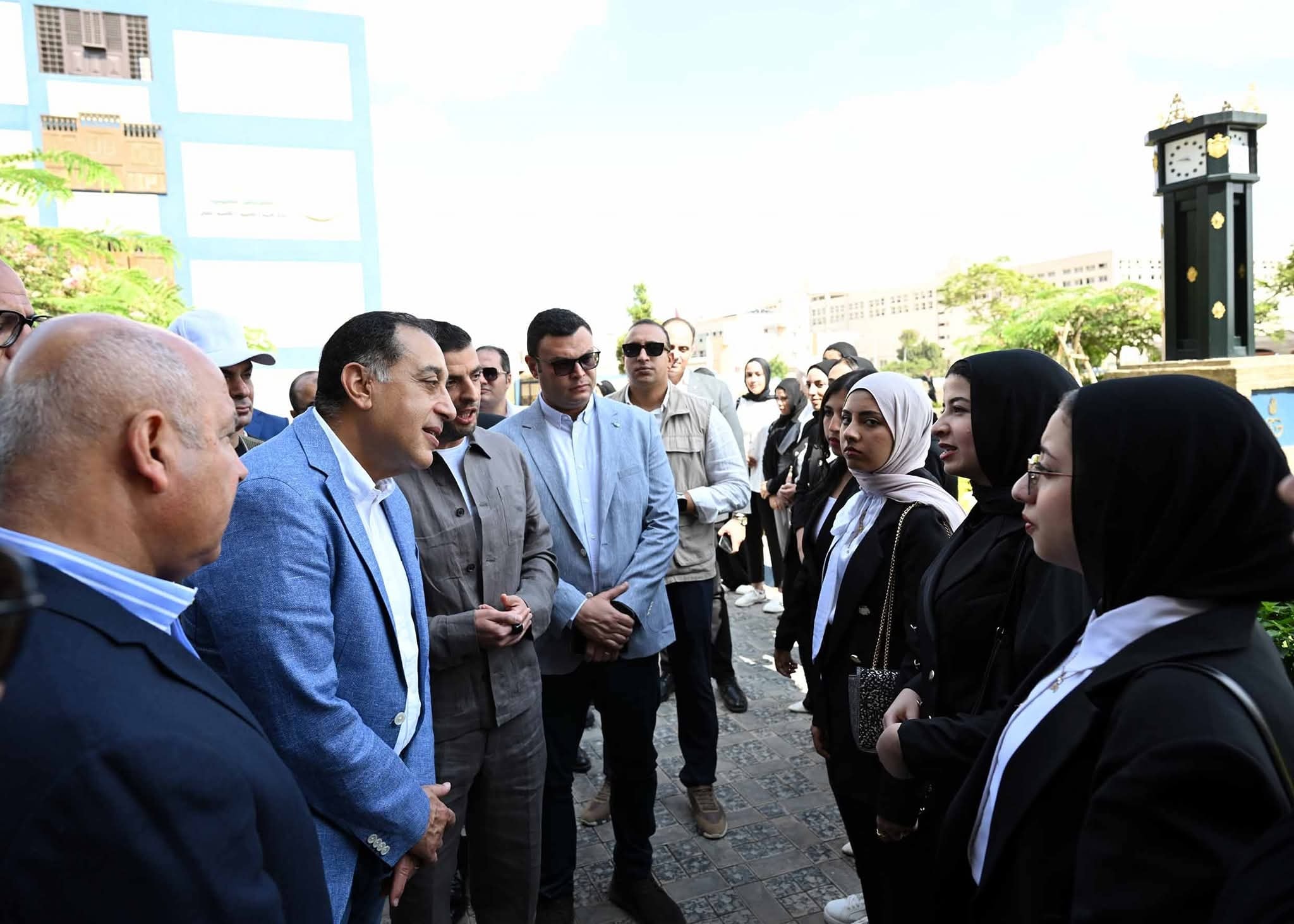 كما شاهد رئيس الوزراء ومرافقوه، معرضاً فنياً للطلاب بعنوان “الفن يجسد مسيرة بناء الجمهورية الجديدة” بالمدرج الروماني بالجامعة، تضمن لوحات فنية عبر الطلاب من خلالها عن فخرهم بوطنهم، وتضمنت لوحاتهم مشاهد مختلفة للنهضة العمرانية الكبرى التي تشهدها مصر في مختلف المجالات، فضلاً عن المشروعات القومية في مجالات التعليم والصناعة والزراعة والبنية التحتية فى مبادرة لتسجيل حجم الجهد المبذول لبناء الجمهورية الجديدة.